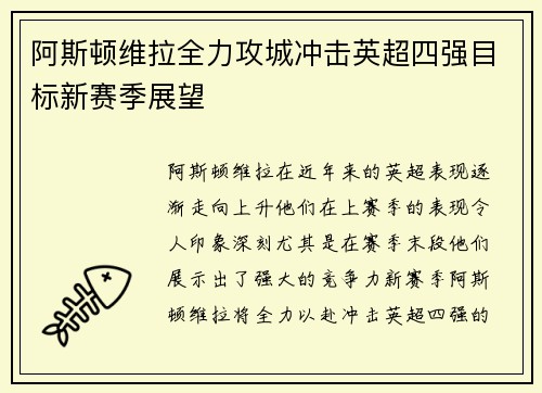 随着英超赛季的推进,阿斯顿维拉球员库尼的表现渐渐脱颖而出,成为了球队和英超新一代球员的代表之一。这位年轻的天才不仅在技术上展现了出色的天赋,还凭借坚韧的意志力和对比赛的深入理解,帮助阿斯顿维拉在英超赛场上取得了突破性进展。本文将从四个方面详细阐述库尼如何通过出色的表现成为英超新星,助力阿斯顿维拉冲击...